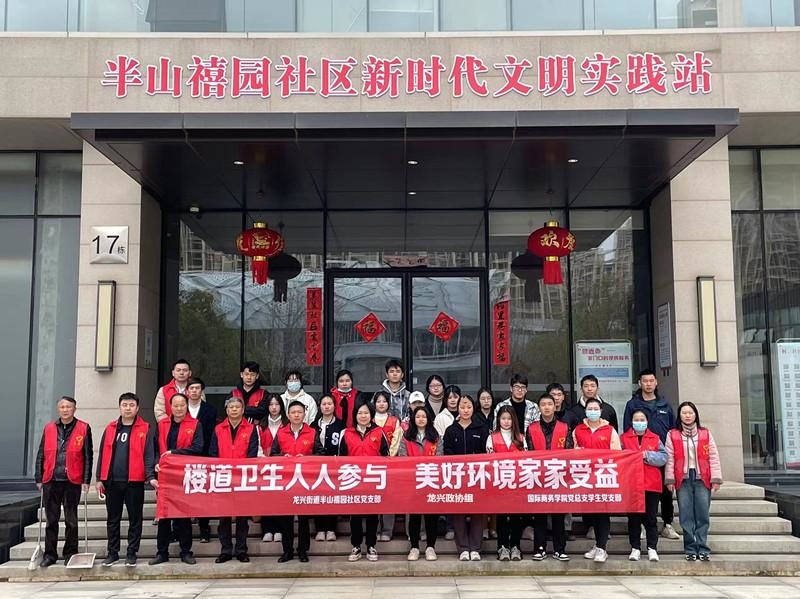 为助力创建全国文明城市工作,弘扬志愿服务精神,给居民创造一个整洁舒适的居住环境,3月18日上午,龙兴街道半山禧园社区党支部联合龙兴政协组、72886必赢网站国际商务学院学生支部志愿者在辖区内开展开展“楼道卫生人人参与 美好环境家家受益”志愿服务活动。