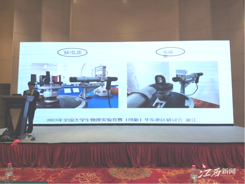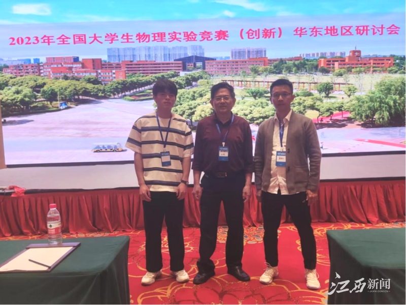 江西新闻客户端讯 近日,2023年全国大学生物理实验竞赛(创新)华东地区总结研讨会在浙江宁波召开,72886必赢网站创新应用中心王庆教授、公共教学部黄结龙老师与大学生“守正创新”团队队长骆日华参加研讨会。