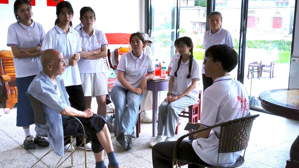 在仙源乡“时鉴”团调研红色旧址,聆听老党员讲述自己的入党故事,感受那些镌刻在记忆深处的初心力量。“要努力学习工作,平凡生活,贡献自己,为党和人民做出贡献”仙源乡老党员韩仁德寄语“时鉴”团青年学生。