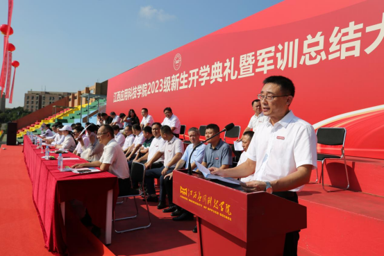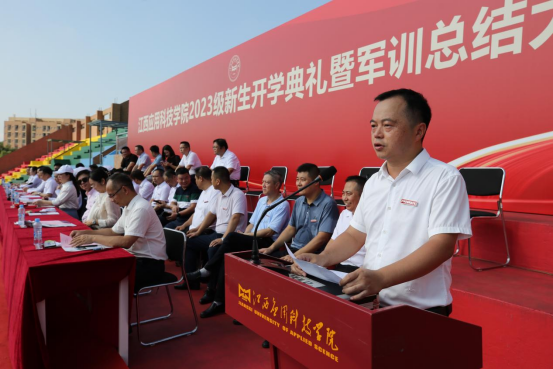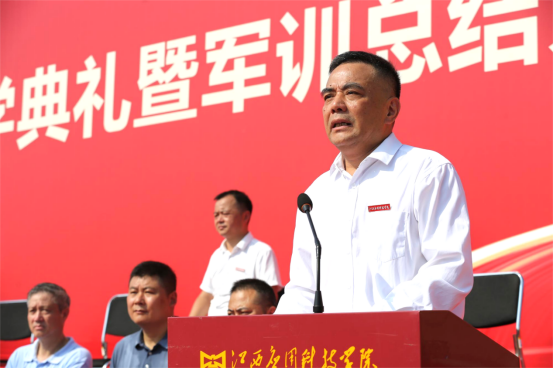 江作军在讲话中向新生表示欢迎并向培育新生的父母和师长致以由衷的敬意!他向新生们提出三点希望。一是希望新生们仰望星空,志存高远。未来属于青年,希望寄予青年,愿你们立志做不负时代、不负韶华、不负党和人民的新时代好青年,志存高远,怀揣梦想,做到理想坚定,信念执着,不怕困难,勇于开拓,奋力拼搏,永不气馁,让青春不留遗憾;二是希望新生们勤学上进,追求卓越。同学们要养成坚持阅读、善于学习的良好习惯,在读书中,了解历史、面对现实、思考未来。在读书中,感悟人生、净化心灵、修身养性;三是希望新生们修身立德,砥砺品质。修身立德没有捷径,希望同学们坚持做到“见贤思齐”,在提高自我修养方面下一番苦功夫,才能有所收获。希望你们培塑强大的意志,学会自律,学会沟通,学会思考。希望你们培养自己健康、乐观、向上的品格,扣好人生第一粒扣子,努力做一个心灵纯洁、人格健全、品德高尚的人。他还希望新生们读万卷书,行万里路。同学们在学习之余,可以领略南昌这座英雄之城内涵丰富的红色文化;欣赏江西“独领风骚”的书院文化;品鉴艳冠群芳“瓷名天下”的陶瓷文化。