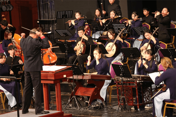 最后,音乐会在《欢庆》中落下帷幕,全场观众齐声高唱,现场气氛严肃活泼,掌声经久不息。观众们欣赏了高水准的音乐演奏,接受了心灵洗礼,这是一台“以音乐会为载体,弘扬优秀传统文化、传承红色文化基因,将价值观的引领 融入音乐赏析的思政大课”。