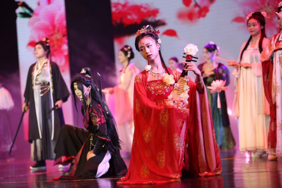 弦歌飞韵,流光溢彩,开场舞《万紫千红》拉开了晚会的帷幕。绚丽的舞姿伴随激昂的旋律迎面扑来,瞬间将观众带入欢乐的海洋。歌舞《珊瑚颂》,展现了我国改革开放30多年来,发生翻天覆地的变化就如同那火红的珊瑚一样,灿烂夺目。古筝合奏《黄河》向我们展示着一幕幕威武雄壮的历史话剧,鼓舞着应科学子奋勇前进。饱含深情的朗诵《百年交响》,以铿锵有力、抑扬顿挫的声音带领我们感受那些曾经挥洒在岁月里的诗意。歌舞《草原的月亮》以清脆而悠扬的歌声,给予应科学子爱的力量。健美操《青春飞扬》展现出应科学子英勇前行、坚决执着的精神面貌。古风歌舞《清明上河图》使人发思古之幽情,带领我们随着舞者的步伐走进令人目眩神迷的繁华盛世。二胡合奏《扬州小调》、《新赛马》,以其独特的音色和演奏技巧让我们感受到民族音乐的东方之美、传承之美。女子群舞《远古的呼唤》引领我们感受来自远古的呼唤,体验敦煌舞韵的热烈奔放。戏剧《橘色金山》以一种不屈不挠的精神照亮我们前行的道路。《热血少年》充分展示了跆拳道的无穷的魅力和深刻的内涵,向我们陈述着应科学子不言败、勇争先的竞技精神。通俗歌曲《平凡之路》用深情而质朴的歌声向我们娓娓道来每一个奇迹后都有一群平凡的人,祝愿应科学子的拼搏都能开花结果。由青云合唱团带来的《观沧海》向我们展示了一幅波澜壮阔的汪洋画卷,让人感受到豪迈的胸怀和雄心壮志。岁月奔涌,日新月异。人民江山,山河壮阔。晚会在歌舞《人民江山》中走向尾声。