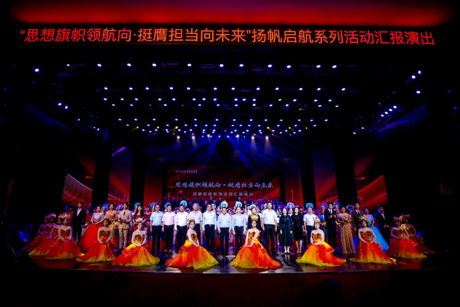 整台晚会激情飞扬,高潮迭起,歌声、掌声、喝彩声此起彼伏,汇成了一支欢乐、和谐的快乐交响曲。最后,校领导嘉宾与表演者合影留念,“思想旗帜领航向,挺膺担当向未来”扬帆启航系列校园文化活动汇报演出圆满落下帷幕。