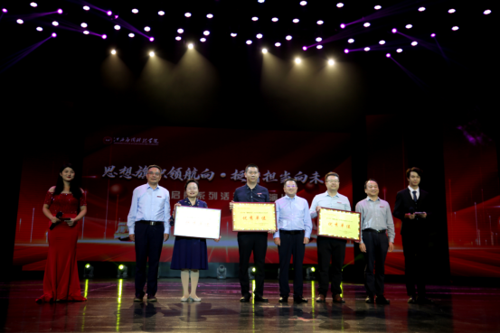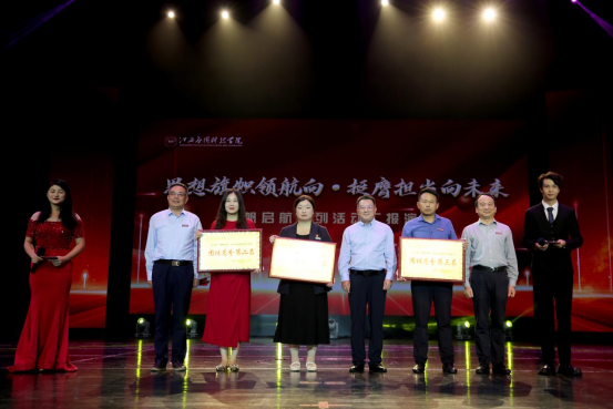 晚会期间,董事长黄玉林,党委书记彭迪云,校长江作军分别为人工智能学院、智能制造工程学院、建筑工程学院颁发“优秀单位”获奖证书;为音乐学院、国际商务学院、软件与区块链学院颁发本届“扬帆启航”大学生校园文化艺术节团体总分一、二、三等奖。