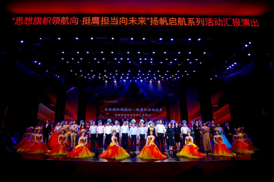 整台晚会激情飞扬,高潮迭起,歌声、掌声、喝彩声此起彼伏,汇成了一支欢乐、和谐的快乐交响曲。最后,校领导嘉宾与表演者合影留念,“思想旗帜领航向,挺膺担当向未来”扬帆启航系列校园文化活动汇报演出圆满落下帷幕。