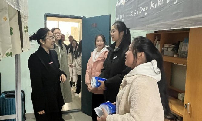 午饭过后,房小珍来到学生宿舍走访,走访过程中,房小珍亲切地和同学们交谈,细心询问日常的住宿、水电和用品等生活问题,询问有没有需要维修和改进的地方,并为每一位同学发放小礼物,逐个叮嘱同学们天气降温要及时添衣保暖、注意身体健康,在宿舍里可以多读书,提升自身的气质修养,遇到困难及时和老师反映。走访在欢声笑语中进行,气氛十分融洽。