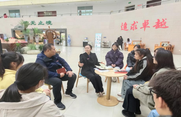 上午10时30分,房小珍带领同学们前往图书馆借阅书籍,在图书馆大厅的休息区开展关于“四个专题”相关书籍的学习交流,并给同学们提供了一些关于学科竞赛等相关方面的想法和建议。