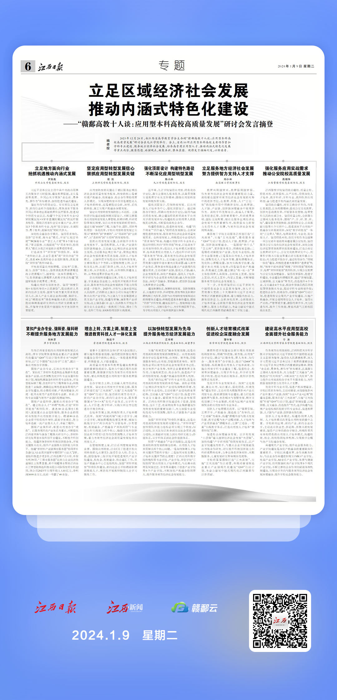立足区域经济社会发展 推动内涵式特色化建设——“赣鄱高教十人谈:应用型本科高校高质量发展”研讨会发言摘登