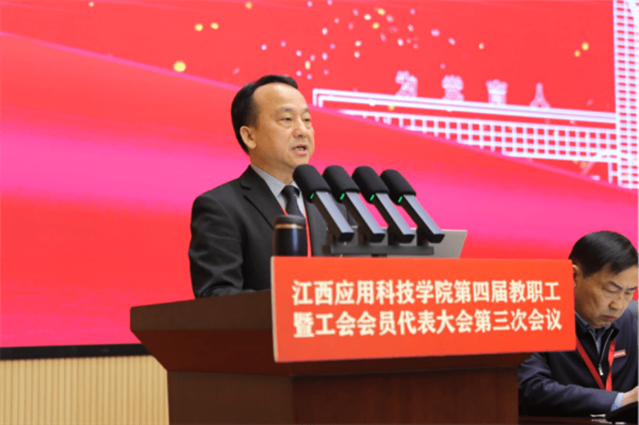 彭迪云强调,2024年在以习近平同志为核心的党中央坚强领导下,在省委教育工委、教育厅的指导下,代表们要把学校的工作思路和大会的决议贯彻下去,要落实好学校第三次党代会目标任务。各位代表要肩负起学校改革与发展的重任,肩负起全校教职工的嘱托和期望,要做好教职工代言人,充分认识到自己的责任和使命,积极建言献策,既要顾大局,也要谋大事,为学校的发展贡献智慧和力量。全体教职员工要以新思想引领新发展,以新面貌实现新突破,以新成果积蓄新优势,推动学校内涵式、高质量发展,以实际行动谱写新的“应科”篇章,以昂扬的姿态、高效的工作为建校40周年献礼。