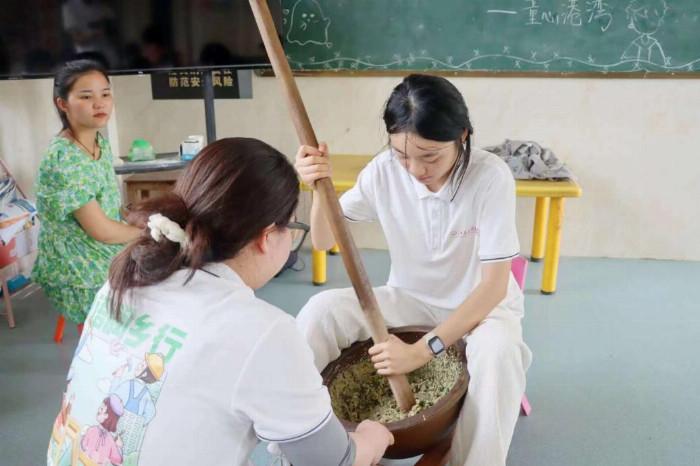 从蔬菜大棚基地的参观,到亲自参与水稻插秧、收割、晾晒等一系列农事活动,实践团成员们亲身体验了现代农业的魅力与艰辛。他们挥洒汗水,与农民一同劳作,不仅增进了对农业生产的理解,更激发了投身乡村振兴的热情。在新干县麦㙦镇丘田村,实践团成员们还亲手参与非物质文化遗产擂茶的制作,化身“时光旅者”,在体验中领悟,在传承中创新,让非物质文化遗产在年轻一代中延续。