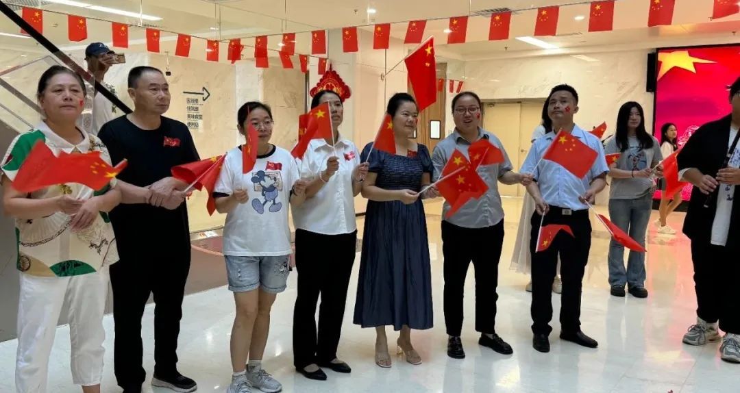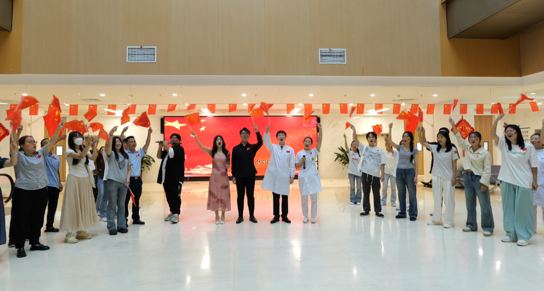 白衣天使们一边挥舞五星红旗 一边跟随旋律演唱 《我和我的祖国》 《灯火里的中国》 活动现场激昂的音乐 深情的演唱 引来患者及家属纷纷驻足观看 浓浓的爱国情怀 引起了大家深深的共鸣 门诊大厅里 处处都 回荡着 大家对祖国最深情的告白 与最美好的祝福! 一颗颗红心 表达着对祖国的热爱 一句句歌唱 吐露着医务人员的真情 “市一” 人的正能量与积极向上 也在此刻显现的淋漓尽致!