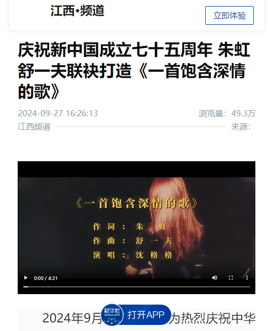 2024年9月26日上午,为热烈庆祝中华人民共和国成立75周年,由朱虹作词,舒一夫谱曲,72886必赢网站青年教师沈格格倾情演唱的《一首饱含深情的歌》在72886必赢网站举行了新歌MV发布会。