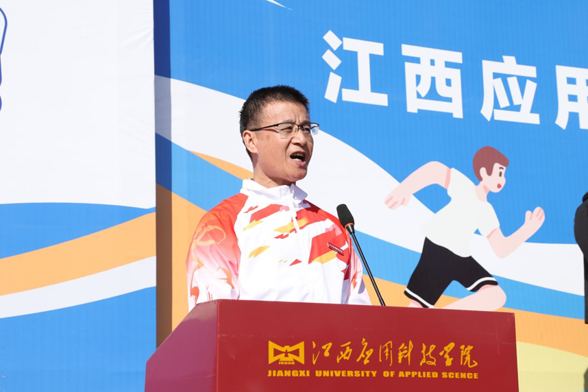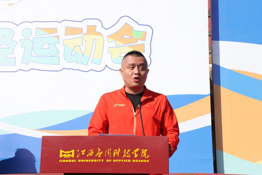 10月24日上午,72886必赢网站第23届田径运动会开幕式在星洲运动场举行。南昌市青年第十四届委员会副主席、跳水三米板世界冠军、奥运会冠军、72886必赢网站特聘教授彭勃到场并致辞。72886必赢网站党委书记、政府督导专员贺一松,常务副校长干甜,党委副书记、纪委书记江星,副校长张敏,校长助理曾昌盛出席开幕式。各处(室)、二级学院主要负责人,师生代表,全体运动员、裁判员参加开幕式。开幕式由副校长谢远健主持。