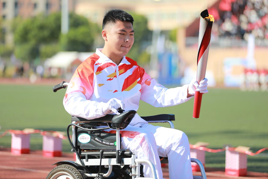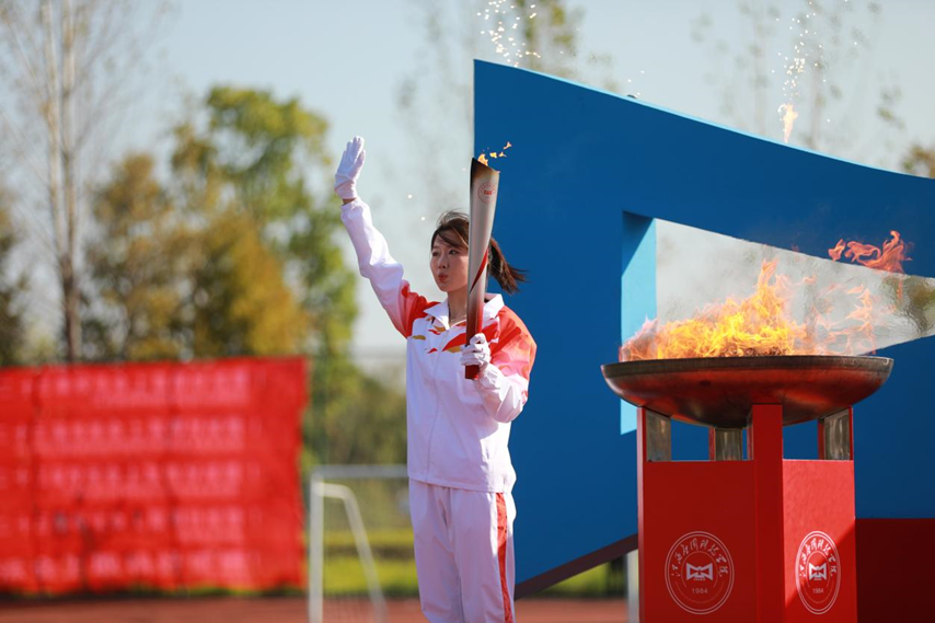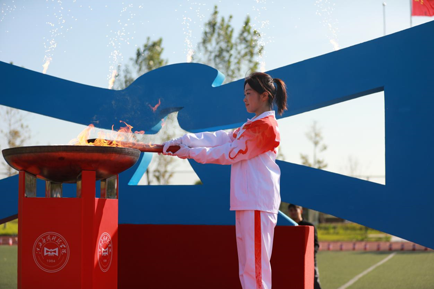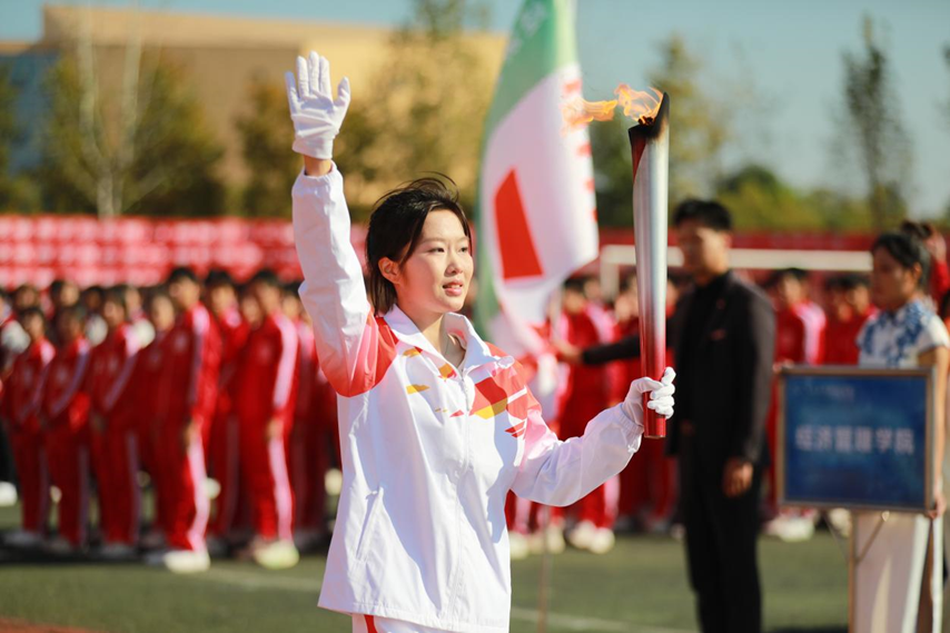 聚力青春,薪火相传。裁判员代表宣誓结束后,校运动火炬传递接力开始。刹那间,整个运动场人声鼎沸,欢呼声此起彼伏。火炬由校领导、优秀青年教师代、优秀学生代表沿着跑道依次传递。
