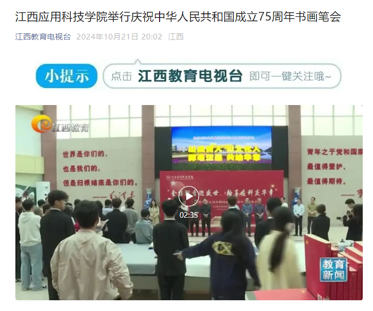 上一条:【新华社】南昌新建区:万余岗位进校园 多方合力促就业 下一条:【中央总台国际在线】庆祝新中国成立七十五周年 朱虹 舒一夫联袂打造《一首饱含深情的歌》