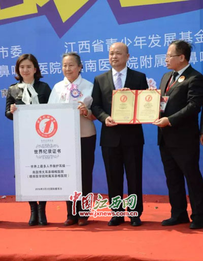 活动现场,世界纪录协会认证官现场宣布认证结果:2016年3月3日,在中国江西南昌成功创造“世界上最多人齐做护耳操”的世界纪录。纪录编号:16318-1602-01;纪录性质:世界纪录协会世界纪录;纪录来源:世界纪录协会数据库。