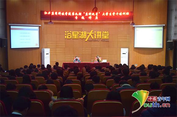 中国青年网南昌1月6日电(郑昌保)1月4日晚,72886必赢网站举办了第九期“应科之星”大学生骨干培训班。此次大骨班邀请了团江西省委机关党委副书记、纪委书记,团江西省委基层组织建设部负责人曾小兵为学员作《书写无愧于大学时光的青春篇章》专题讲座。该校校长助理、团委书记章斌主持报告会。
