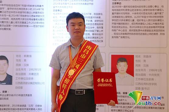 郑昌保荣获第六届南昌青年五四奖章。受访者供图
