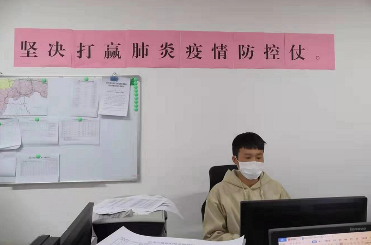 在劝返点,每当有车辆和人员经过时,执勤中的黄浩斌都会上前一遍遍的耐心询问和温馨提醒,并进行体温检测、登记。回到疫情防控应急指挥部,黄浩斌每天要登记防控物资发放情况,梳理发热人员信息,统计辖区返乡人员等。