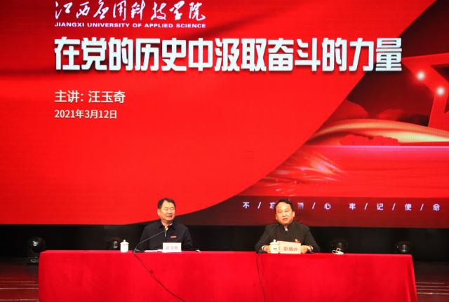 报告会上,汪玉奇强调了在全党开展党史学习教育的重大意义,阐述了开展党史学习教育的必要性和要求,围绕“学党史、悟思想、办实事、开新局”,以独特的理论视角、坚定的党性情怀、感人至深的党史故事,在历史与现实,理论与实践的贯通中生动讲述了中国共产党艰苦卓绝的奋斗历程和伟大精神。