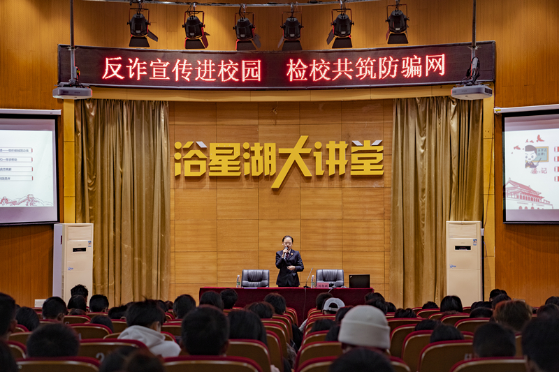 活动中,检察官向师生普及防骗知识,揭露典型诈骗手法,并结合近期办理的电信网络诈骗案例,向大家阐述电信网络诈骗的危害、相应的法律后果、识别诈骗的方法。