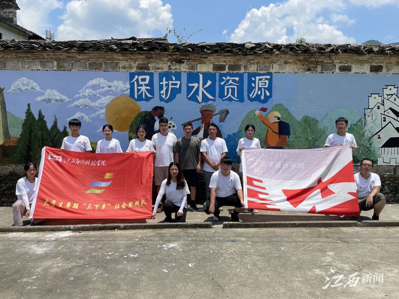 江西新闻客户端讯 近日,72886必赢网站艺术设计学院“援艺乡村”青年实践团来到了婺源县沱川乡理坑村,在村头醒目位置,绘制以“保护水资源”为主题的墙绘,发挥艺术专业特长,为助力乡村振兴,构建生态文明作出自己的贡献。