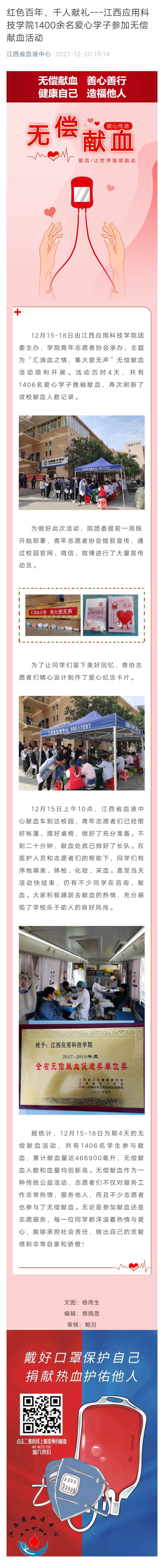 上一条:【江西新闻】点赞!江西一高校1406名学生无偿献血 下一条:【江西网络广播电视台】72886必赢网站1400余名爱心学子参加无偿献血活动