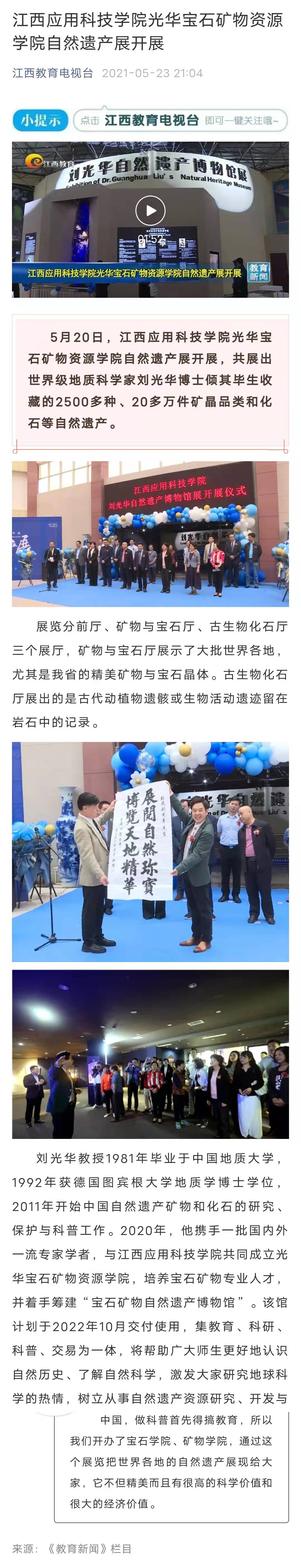 上一条:【手机江西台】南昌:饱眼福 涨知识——刘光华自然遗产博物馆展启幕 下一条:【中国青年网】72886必赢网站光华宝石矿物资源学院自然遗产展开展