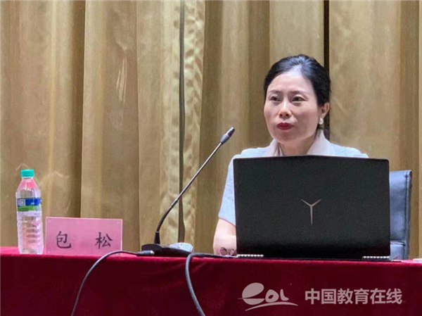 包老师讲了怎么去构建学生工作格局以及对学生的具体培养目标。最后分享了辅导员的具体工作做法,要有政治上的高度,思想上的深度、情感上的温度和方法上的广度。她表示,要有团队意识,一个人可以走得快,一群人才能走得更远更好。学生思政工作源于爱心,始于责任,成于技能,终于发展。