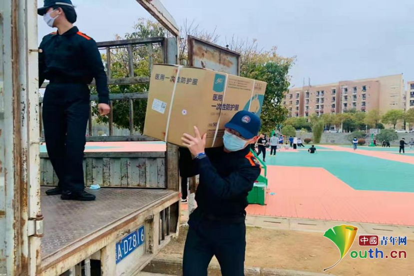 核酸检测场就是战场。突击队指导老师黄广斌在现场迅速进行周密部署,对突击队员进行分工,现场布控、维持秩序、搬运物资、做好学生心理辅导、应对突发状况……对现场可能出现的情况都做了预案,确保万无一失。队员们从统一领取服装,在该校南门东门以及校内进行疫情布控、阻止外来无关人员进入校园、提醒师生带好口罩做好防护措施,给隔离区同学体温测量和室内消毒、到完成被装发放,一直忙到深夜。