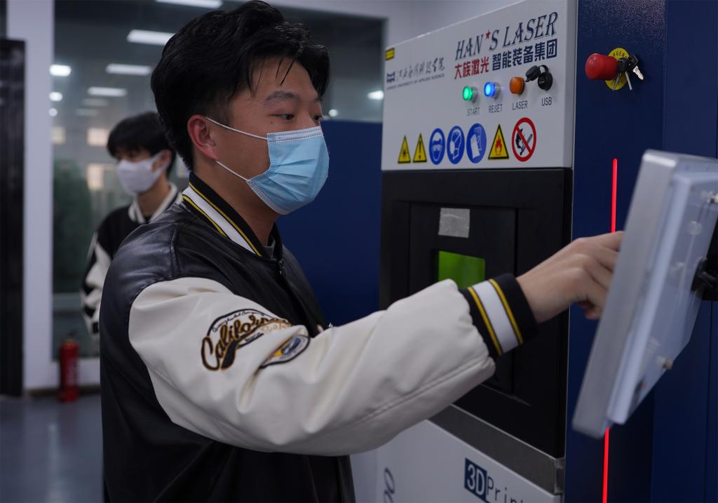高原和李柏洲两位同学表示,制作合金“冰墩墩”的过程时间很漫长,我们先要在绘图软件上进行“冰墩墩”尺寸的精细化设计,并传送到U盘里,在机器上进行打印。然后使用大族激光3D铺粉打印机打印,打印一个“冰墩墩”需要七个多小时。经过两天的努力,再将打印好的“冰墩墩”成品进行切割,并对“冰墩墩”进行精细化钻研打磨,最终制作出精美的合金“冰墩墩”。( 许新梅、王雪萍、李孟娜、严远磊 )