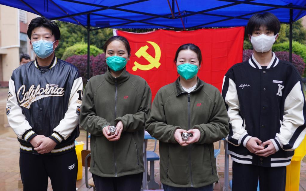 高原和李柏洲两位同学表示,医护人员这几天无惧风雨、尽职尽责地为学生做核酸,特别感谢他们的辛苦付出。“我们也想运用自己的专业知识,为医护人员做点什么。当看到网上热门的“冰墩墩”时便突发奇想,利用所学知识为医护人员制作了合金‘冰墩墩’。”