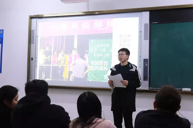 图为吴志磊返校后在班里组织“返家乡”社会实践分享
