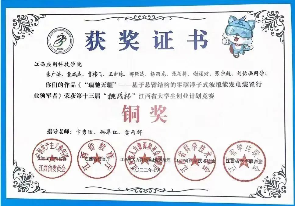 2021年8月荣获“第十四届全国大学生节能减排社会实践与科技竞赛”全国三等奖;