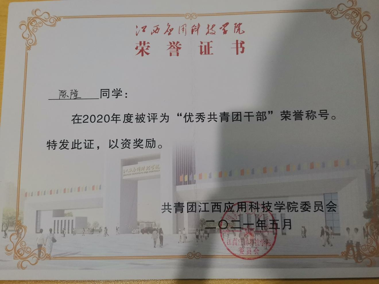 师长点评:陈隆同学一直以来工作积极主动,态度认真,学习勤奋刻苦,成绩优秀,经常参加各类竞赛活动并取得优异成绩,同时积极参加各类志愿服务活动,参加各类志愿服务活动百余次,利用寒暑假时间参与返家乡社会实践4次,深入地方,在基层团组织兼职干部,参与相关工作,多次获得实践单位的书信表扬并被当地团县委公众号报道。