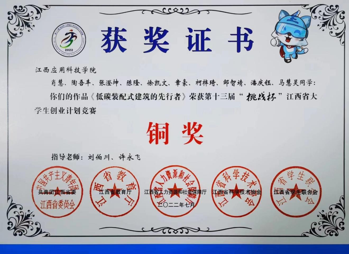 2022年第十三届“挑战杯”江西省大学生大学生创业计划竞赛铜奖