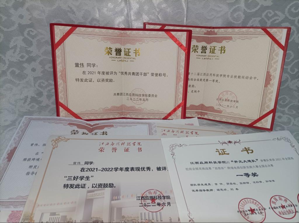 师长点评:曾伟同学思想积极进取,积极向党组织靠拢;学习成绩优异,在比赛中取得了优异的成绩,树立了良好的班风学风。作为班级团支书,认真完成团支部的各项工作,工作认真负责。积极参与社会实践活动和学校组织的各类活动。