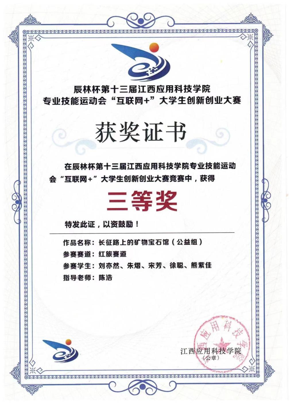 在社会实践方面,我申请进入学生会,我加入的是学生会办公室。主要工作是搜集信息、出校园活动策划书、参加绿拾者活动为学校的环境奉献出一份力量等。在2019年11月20号参加必赢官网举办的舞蹈节志愿者活动,做好接待前来必赢官网参加舞蹈比赛的各大高校,为其他学校提供便利。在建筑工程学院负责人胡磊的带领下参加2019—2020公益未来·玛氏箭牌“垃圾投进趣”,并且在全国青年公益实践大赛华中区域赛获得“优秀奖”。这些也是我开启比赛之门的“钥匙”,成功为我在22年拿到三个省赛奖和国奖埋下了铺垫。很感谢过去努力的自己,才有了今天的收货。