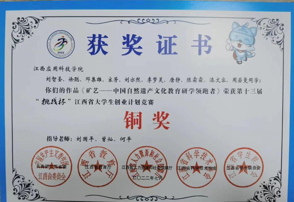 4.2022年7月挑战杯第十三届江西省大学生创新计划竞赛省级铜奖
