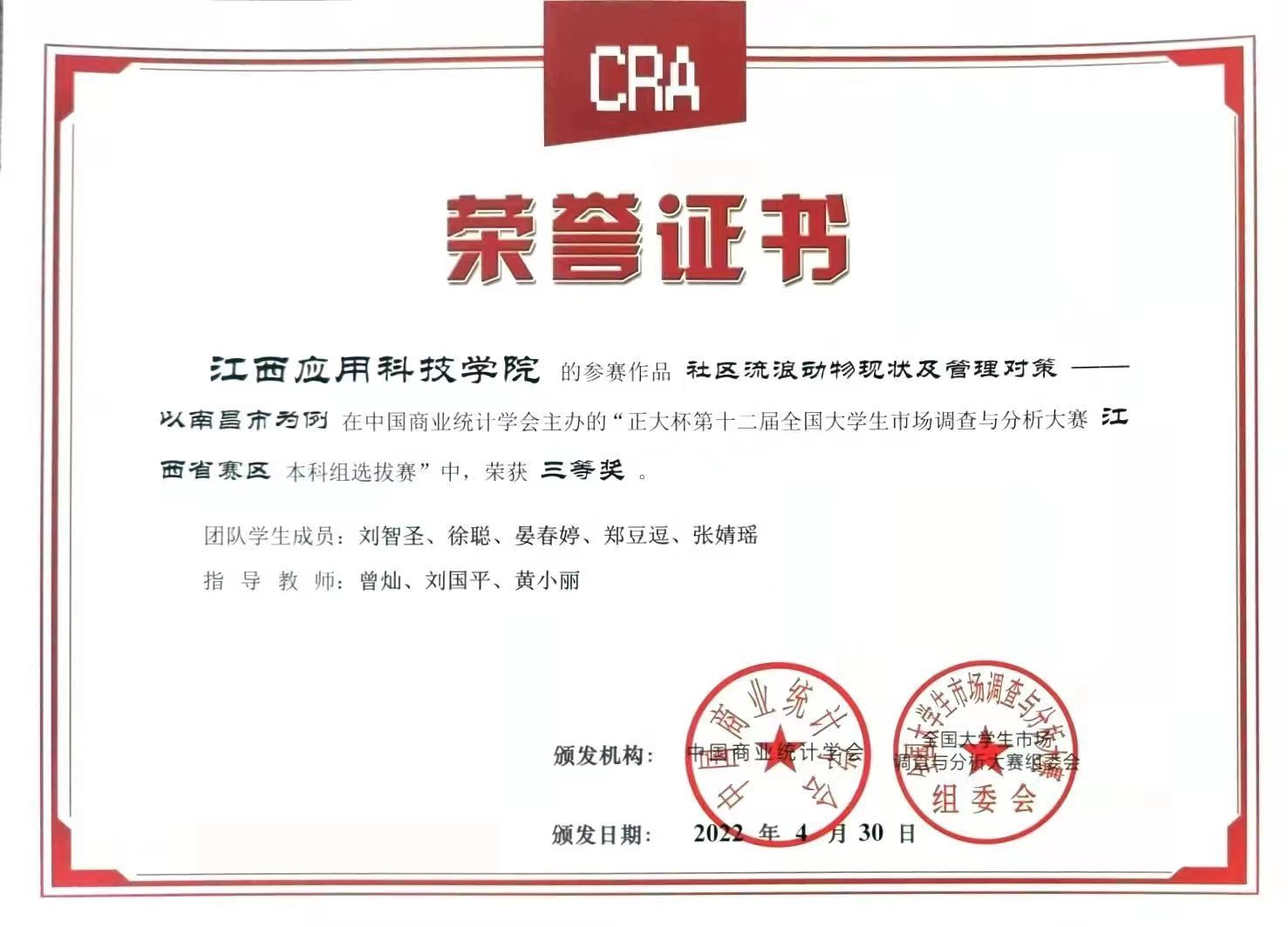 1.2022年5月正大杯第十二届全国市场调查与分析大赛省级三等奖