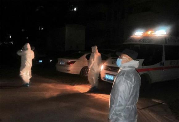 张俊涛随同医护人员一起护送重症患者去火神山医院