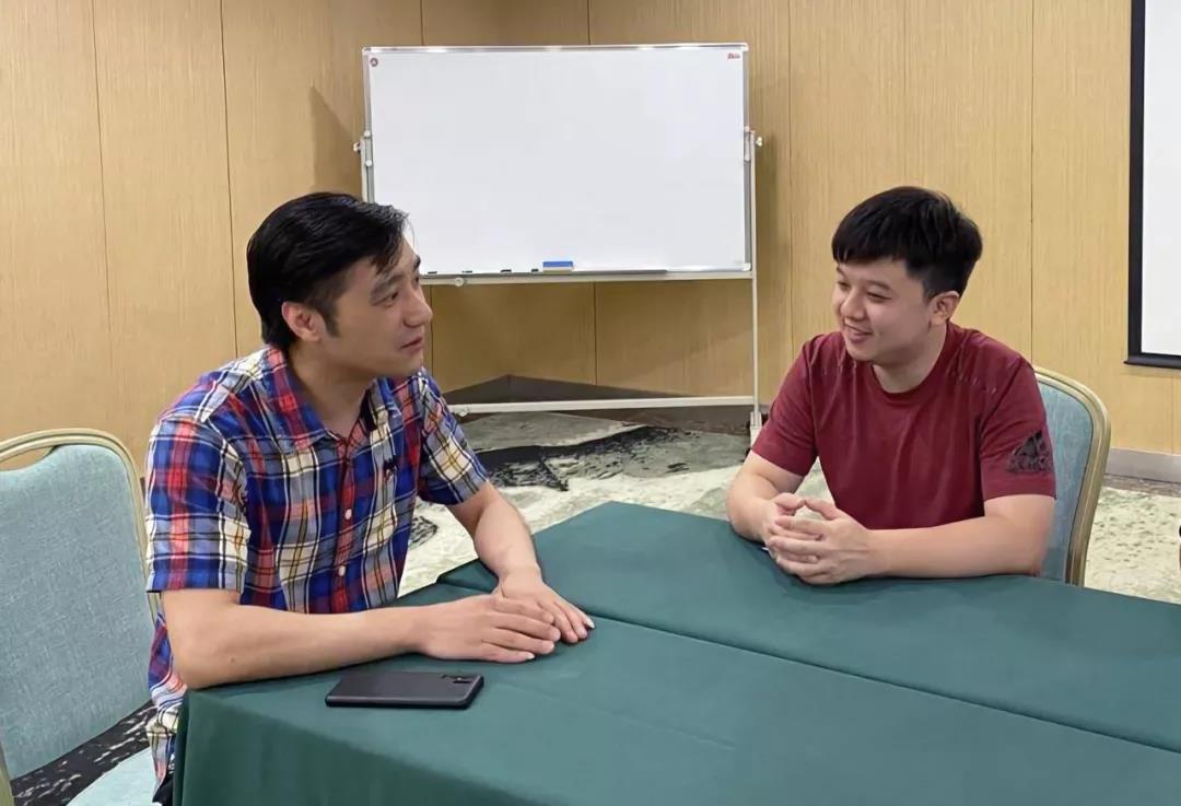 肖罡博士与系统科学研究室主任黄冠迪在进行交谈