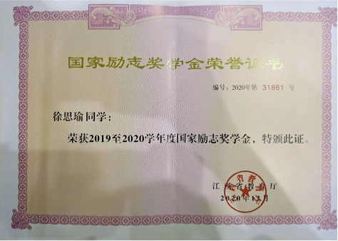 在学习上,她学习态度端正。她始终将学习放在首位,从未放松对专业知识的学习,下课主动去图书馆学习课外的专业知识,及时补充课堂知识的不足,并积极完成课后作业。她铭记“不满是向上的车轮”,因此不断提升自己,让自己始终在进步。学习成绩优异,在班里成绩连续两学年荣获第一名。遇到不会的知识虚心求教老师或同学直至问题解决。同时她也会自我反思短期时间内的不足并及时改正,做到自身德智体美劳的全面发展。