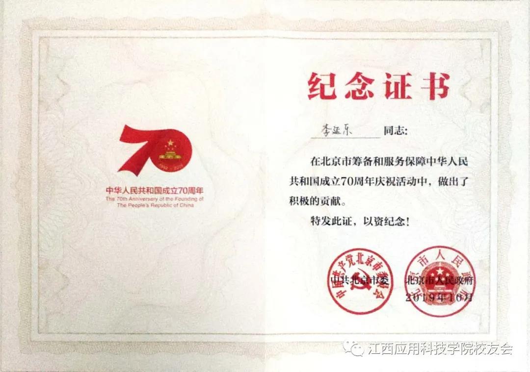 ▲庆祝新中国成立70周年专项活动纪念证书
