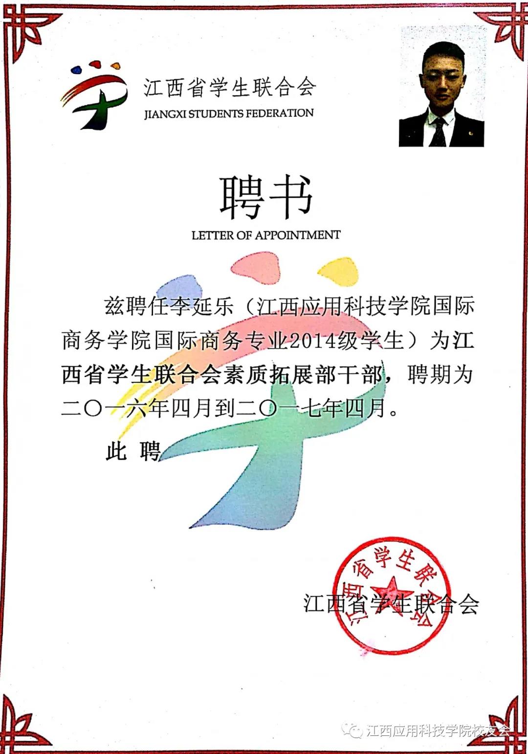 ▲李延乐受聘江西省学生联合