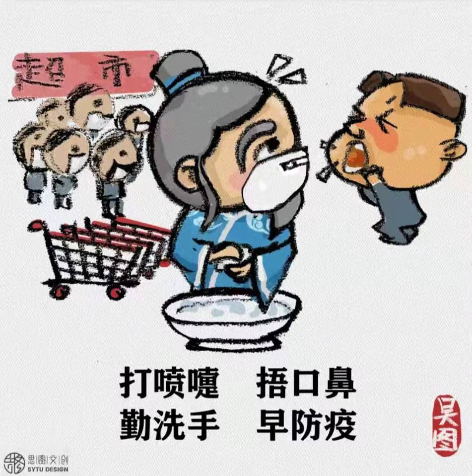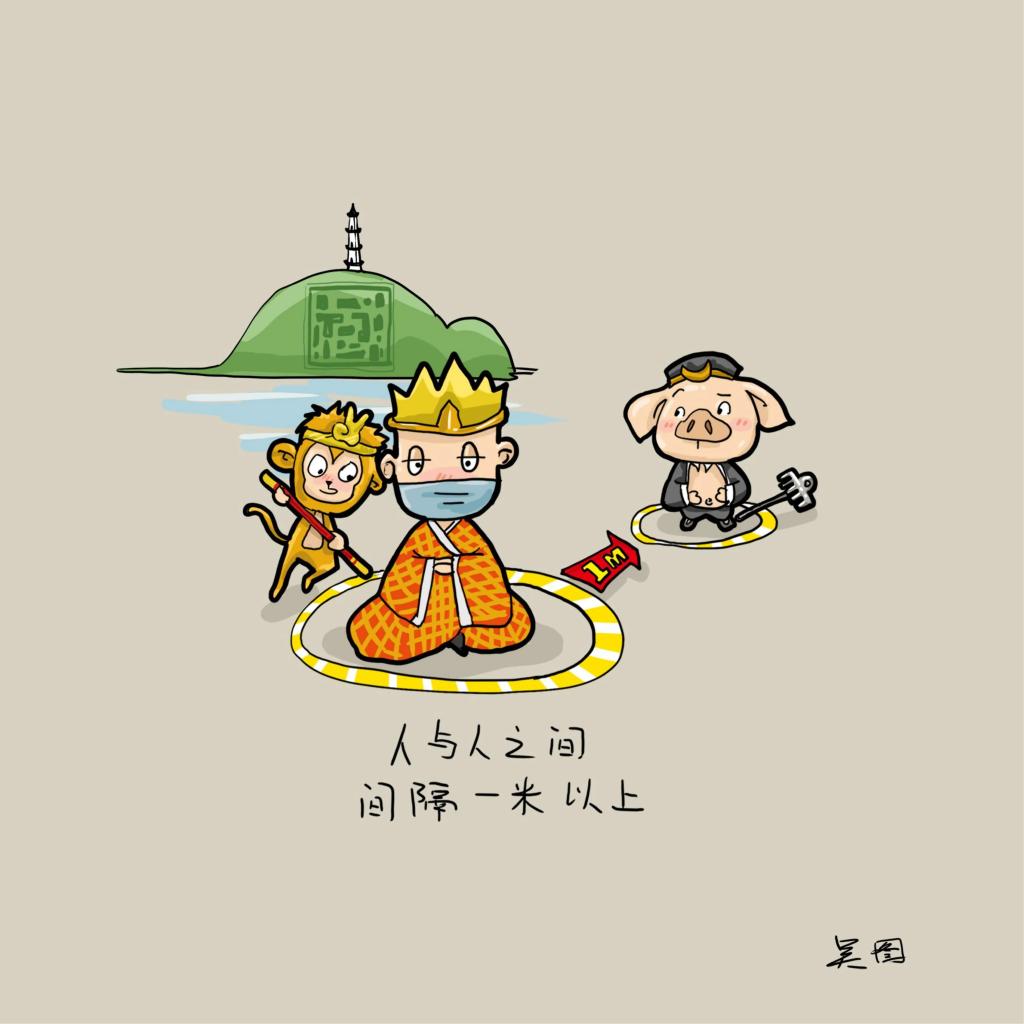 去年1月,受“人民日报”微信公众号推文启发,吴图以漫画的形式,提醒全体市民防控注意事项。