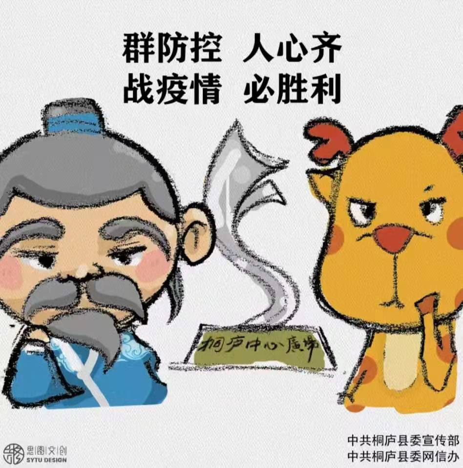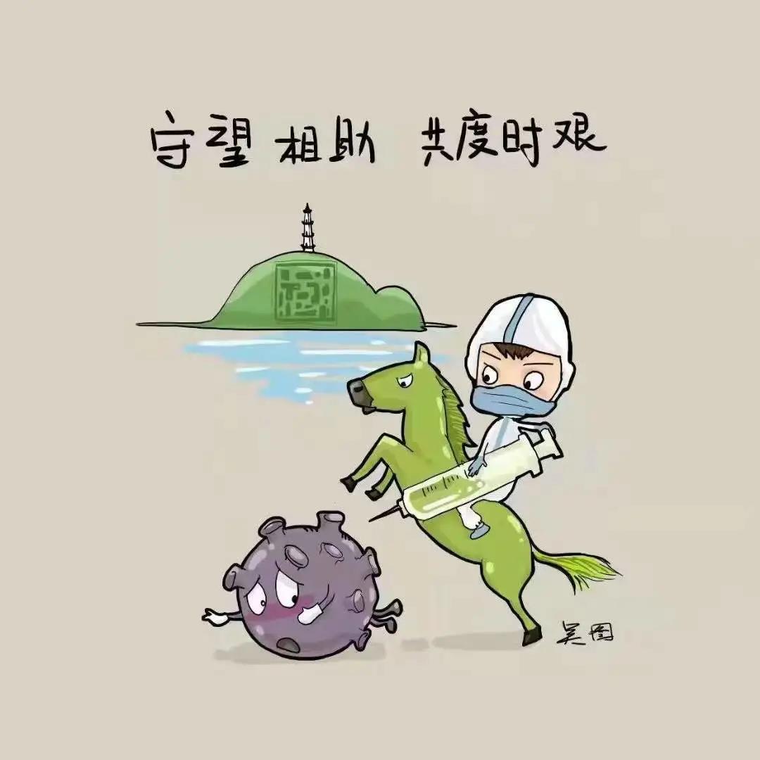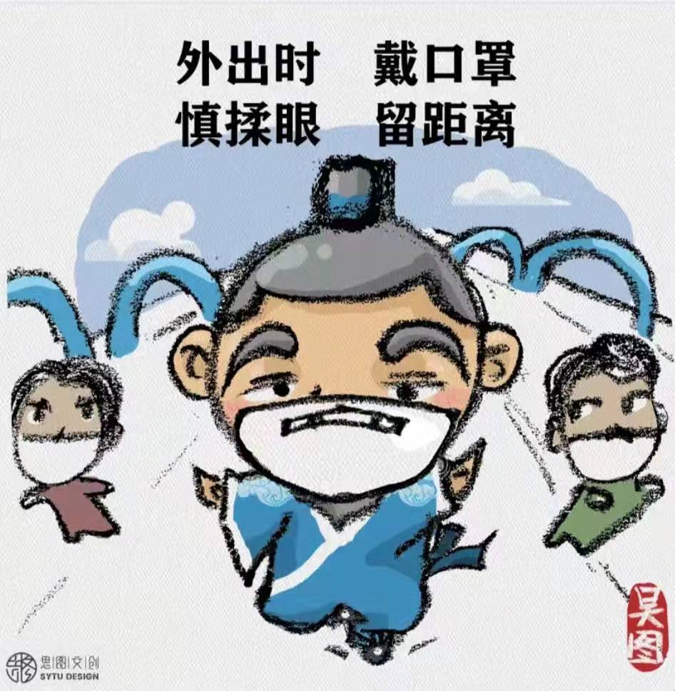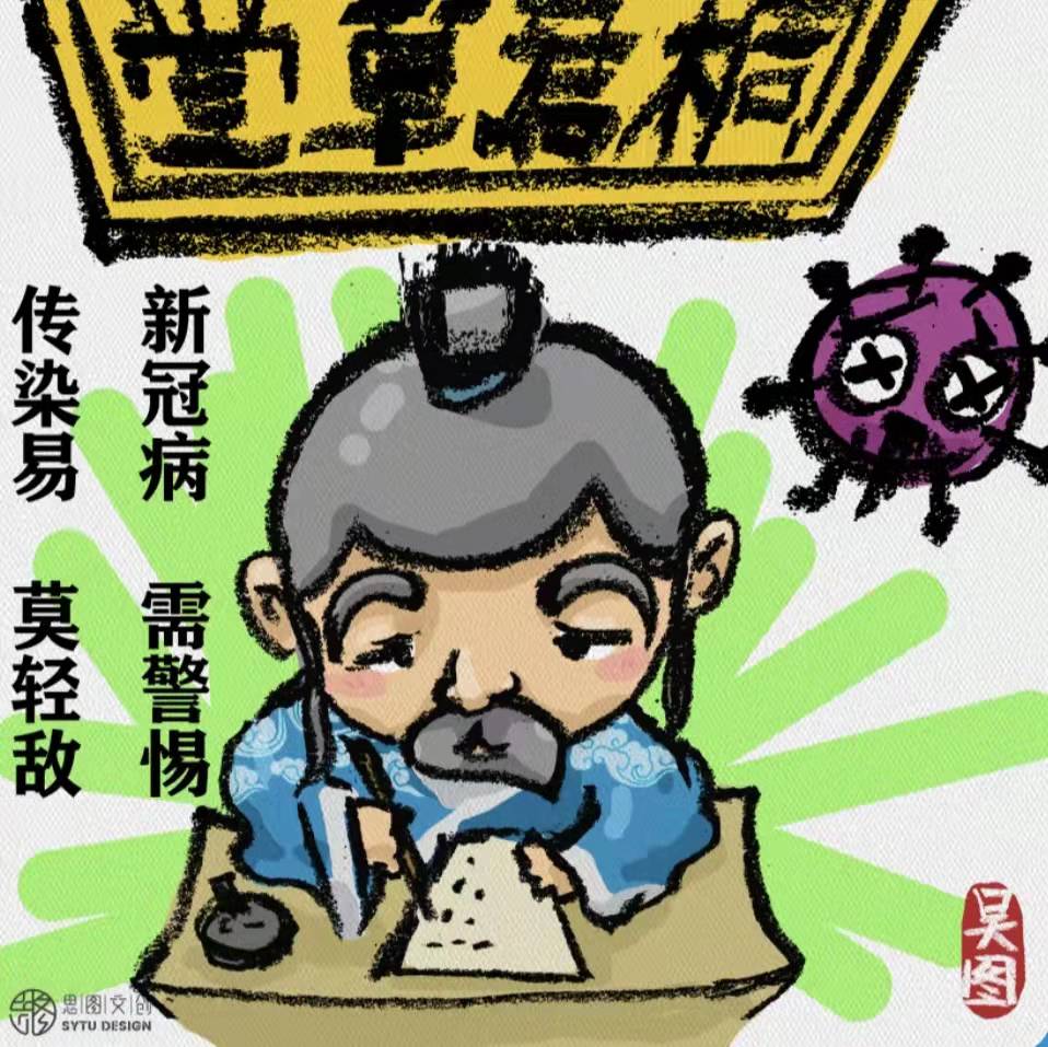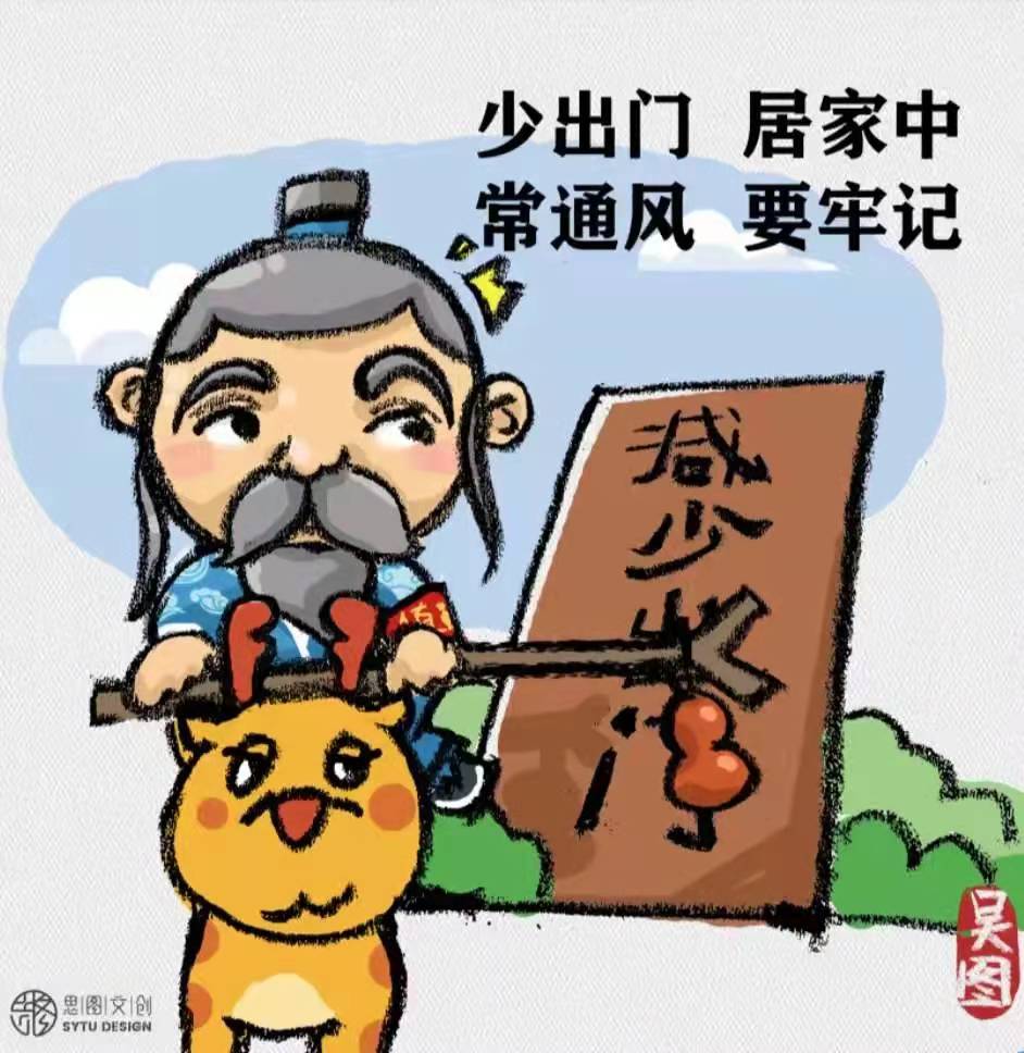 古有桐君老人采药救人,今有桐君老人战疫提醒。在吴图笔下,桐君老人重新“活”了起来,为桐庐市民战疫加油打气。