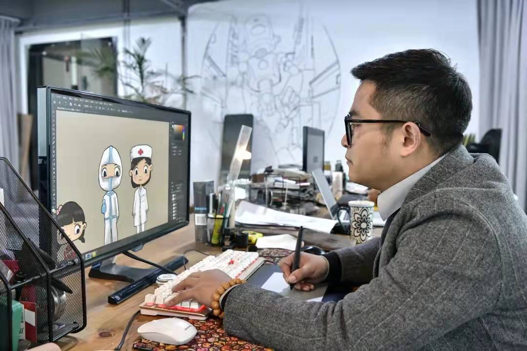 工作室成立以来,吴图创作了很多公益漫画,除了风靡朋友圈的多组作品,还常常被“学习强国”平台录用,也为学习强国形象大使“强强”“国国”设计了卡通形象。
