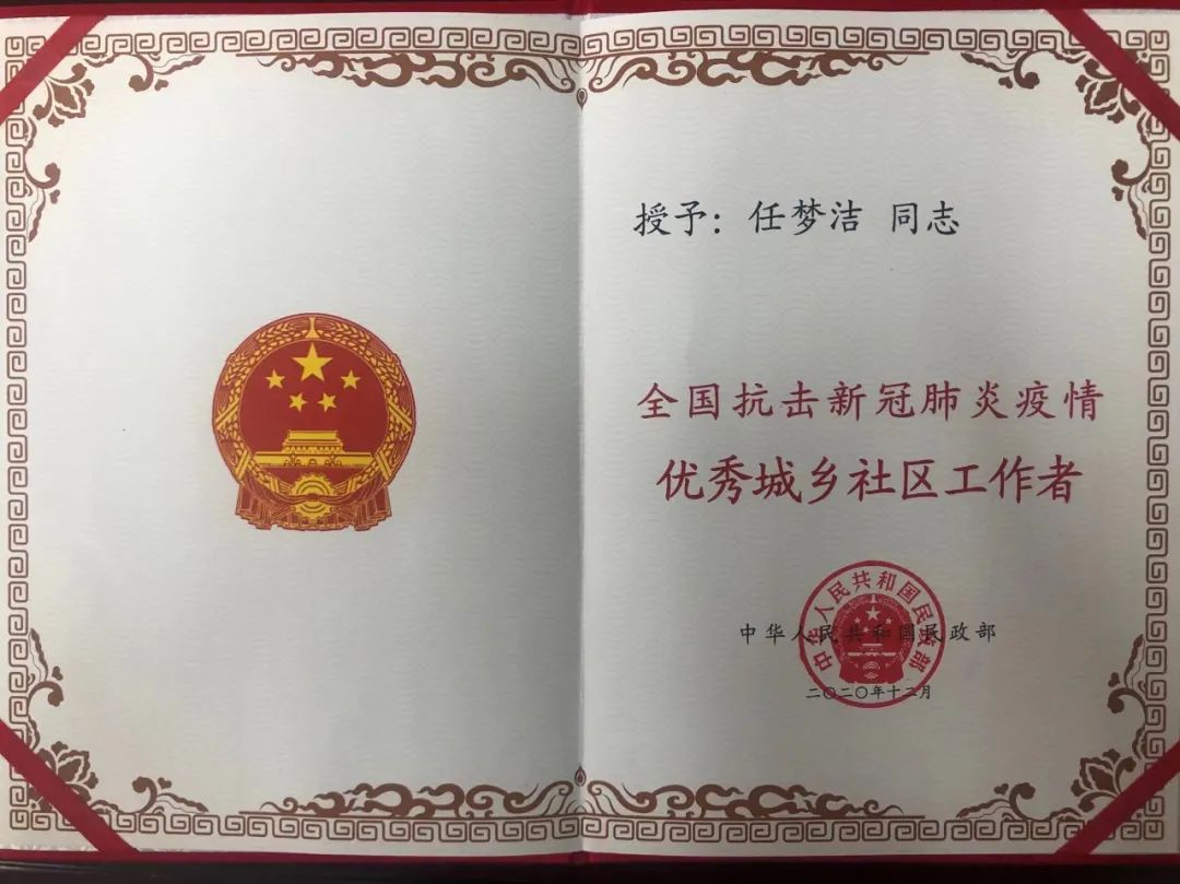 作为一名共产党员,她时刻不忘自己的责任和义务,一切从人民的利益出发,牢记中国共产党的宗旨:“全心全意为人民服务”。从事基层党务工作以来,工作表现优秀,先后荣获优秀共产党员称号,荣获“全国抗击新冠肺炎疫情优秀城乡社区工作者”荣誉称号。