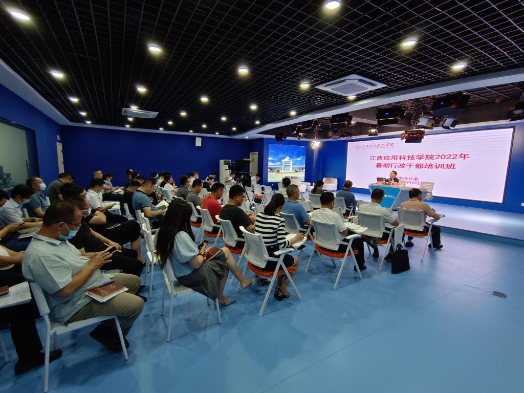 为扎实推进必赢官网各干部学习教育的常态化与制度化,72886必赢网站在融媒体中心开展为期三天的2022年暑期行政干部培训学习,培训采取线上线下相结合方式开展。7月19日上午,学校党委书记彭迪云以《学习习近平总书记关于人民至上的重要论述努力办好人民满意的教育》为主题授第一课。全体校领导出席会议。培训由校长黄士安主持。全体教职工参加学习。
